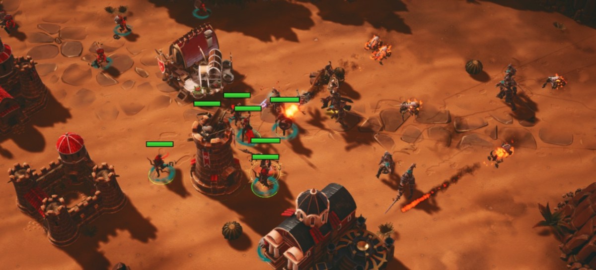 Drei Fraktionen treten auf dem Schlachtfeld gegeneinander an, und zwar das noble Haus Rupah, die wilden Nomaden oder die rastlosen Untoten. Sie sollen sich spielerisch unterscheiden, was aber erst weitere Multiplayer-Partien zeigen werden. Angeführt werden die Armeen von einem Helden, der über besonders starke Attacken verfügt. Der Held der Untoten kann zum Beispiel Kreaturen beschwören, die ihm zur Seite stehen. Ob es pro Fraktion noch weitere Helden geben wird und ob diese Ausrüstungsgegenstände tragen können, ist bisher nicht klar.