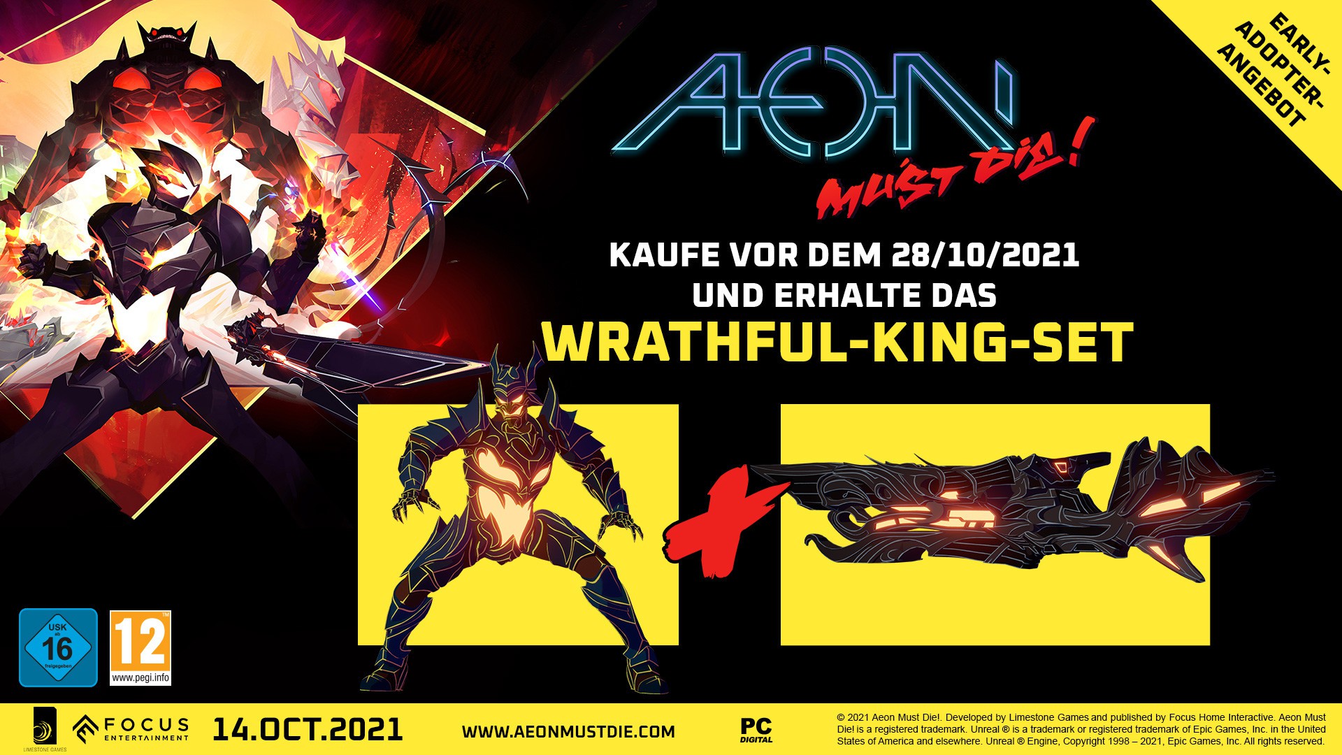 Am 13. bzw. 14. Oktober 2021 haben Limestone Games und Focus Entertainment den Sci-Fi-Brawler Aeon Must Die! für PC, PlayStation 4, Xbox One und Nintendo Switch veröffentlicht. Der Download via PlayStation Store, Microsoft Store, eShop, Epic Games Store und Steam, wo die Nutzerreviews bis dato „ausgeglichen“ sind, kostet jeweils 19,99 Euro. Wer noch vor dem 28. Oktober zuschlägt, erhält das Wrathful King Set als Frühkäuferbonus:
