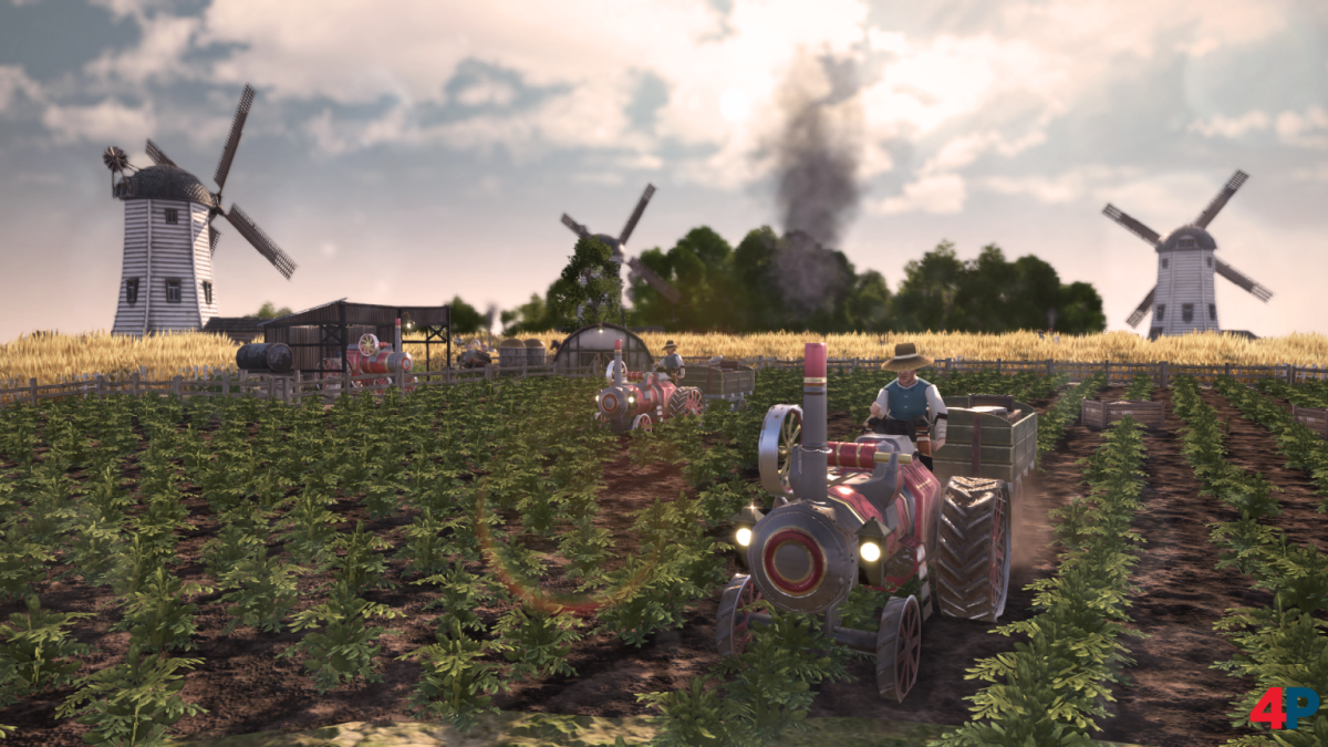 Anno 1800: Reiche Ernte führt Traktoren ein, mit denen die Felder (und Farmen) effizienter bewirtschaftet werden können. Die Entwickler bescheiben es als ein Gegenstück zur Elektrizität, welche viele andere Produktionsstätten schneller und effektiver produzieren lässt.