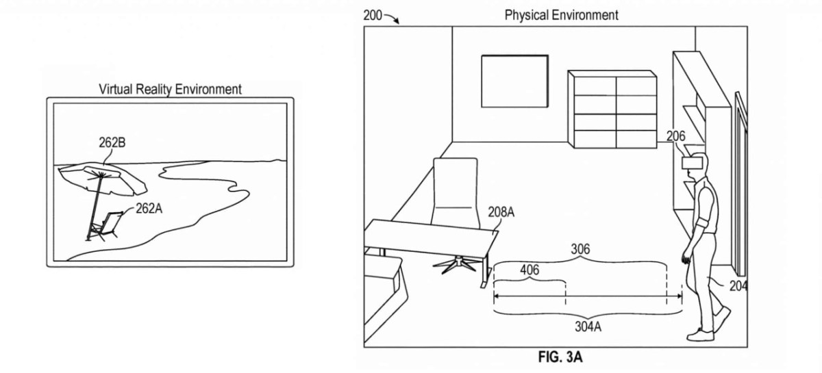 Ein Apple-Patent über Schutzgitter am Rande von VR-Spielfeldern facht diese Spekulationen derzeit erneut an. Das Magazin Appleinsider.com ist auf einen entsprechenden Eintrag gestoßen, der VR-Nutzer davor bewahren soll, in reale Objekte zu laufen. Das System ähnelt also gängigen „Chaparone“-Schutzgittern – z.B. von SteamVR oder Oculus – bietet am Rand der Spielfläche allerdings zwei hinereinander liegende Grenzen. Bei der ersten wird ein „visueller Hinweis in der Virtual-Reality-Umgebung eingeblendet, worin der visuelle Hinweis mit der Distanz korrespondiert, welche mit dem physischen Objekt assoziiert wird“.