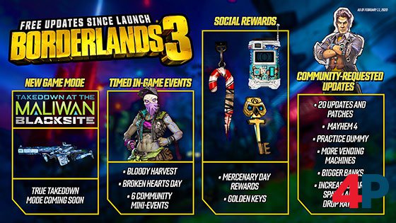 Ihr wollt mehr über die kommenden Inhalte wissen? Dann schaut euch bei der PAX East am 27. Februar das Gearbox-Forum an! Es wird ab 20:30 MEZ live über twitch.tv/borderlands gestreamt. Stellt euch auf einen Haufen spannender neuer Inhaltsankündigungen ein, darunter die vollständige Enthüllung der zweiten kostenpflichtigen Kampagnen-Erweiterung von Borderlands 3!