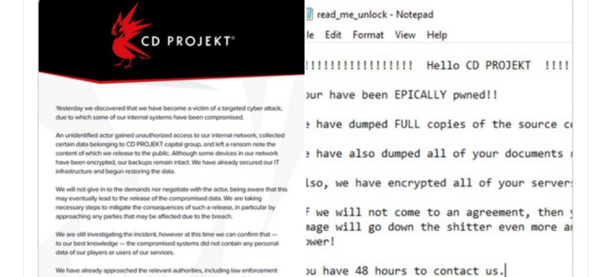 CD Projekt RED, Hersteller von Spielen wie Cyberpunk 2077 oder The Witcher 3: Wild Hunt ist offenbar Opfer einer umfangreichen „gezielten“ Cyberattacke geworden: Das Studio teilt auf seinem Twitter-Auftritt mit, dass Unbekannte in das interne Netzwerk eingedrungen seien, umfangreiche Daten entwendet und Teile des Netzwerks verschlüsselt hätten. Das Studio veröffentlichte auch das erhaltene Erpresserschreiben auf Twitter.