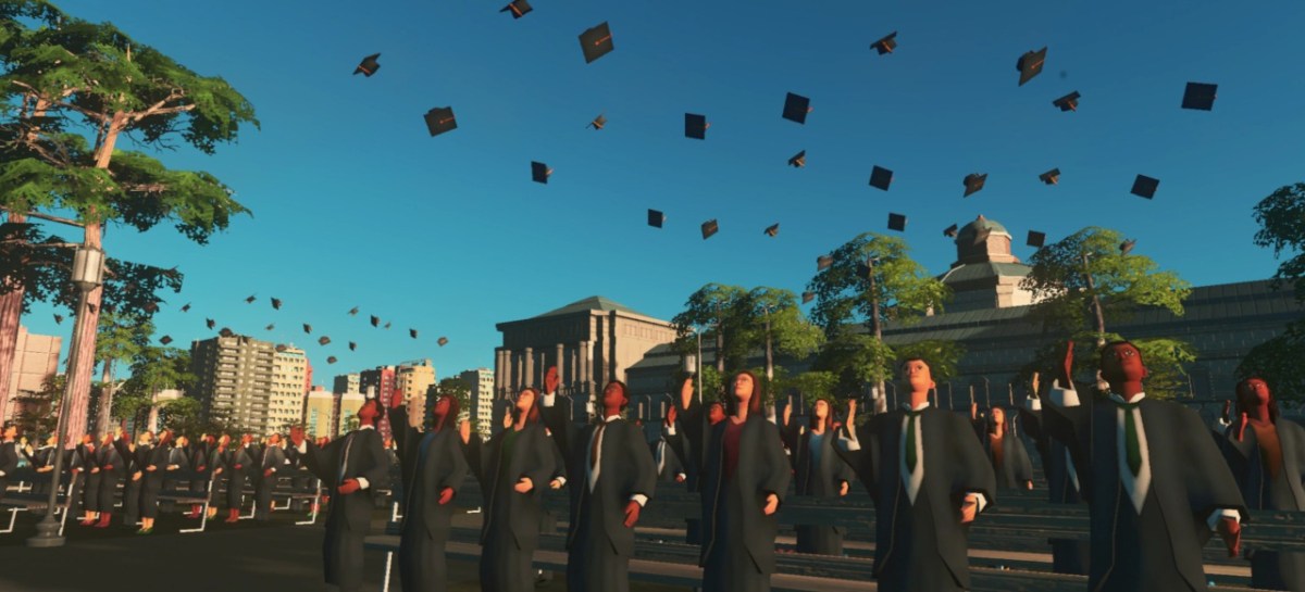 Darüber hinaus veröffentlicht Paradox Interactive zwei weitere DLC-Pakete mit Radiosendern (Deep Focus Radio und Campus Rock Radio für je 3,99 Euro), das Content Creator Pack: Universitätsstadt (36 Wohngebäude, 32 Geschäftsgebäude und 15 Requisiten für 4,99 Euro) und ein kostenloses Update. Letzteres umfasst zwei neue Bibliotheksgebäude, einen gelben Schulbus, Berufsbezeichnungen im Infofeld der Bürger und neue Industriestrategien.