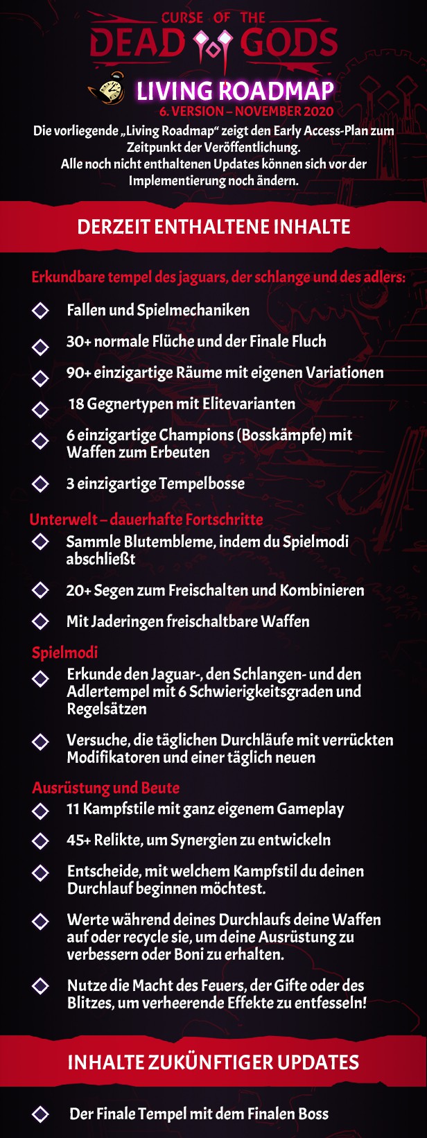 Nach fast einem Jahr im Early Access wird Curse of the Dead Gods am 23. Februar 2021 für PC (Steam), PlayStation 4, Switch und Xbox One erscheinen.