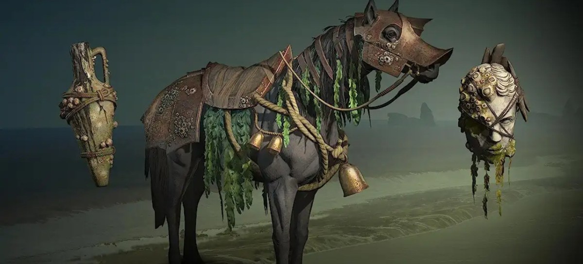 Das sogenannte Brackige Längen – Reittierrüstungspaket für Diablo 4 besteht erst einmal aus den folgenden rein kosmetischen Gegenständen:- Reittierrüstung: Die Schuppen des Toten Meeres