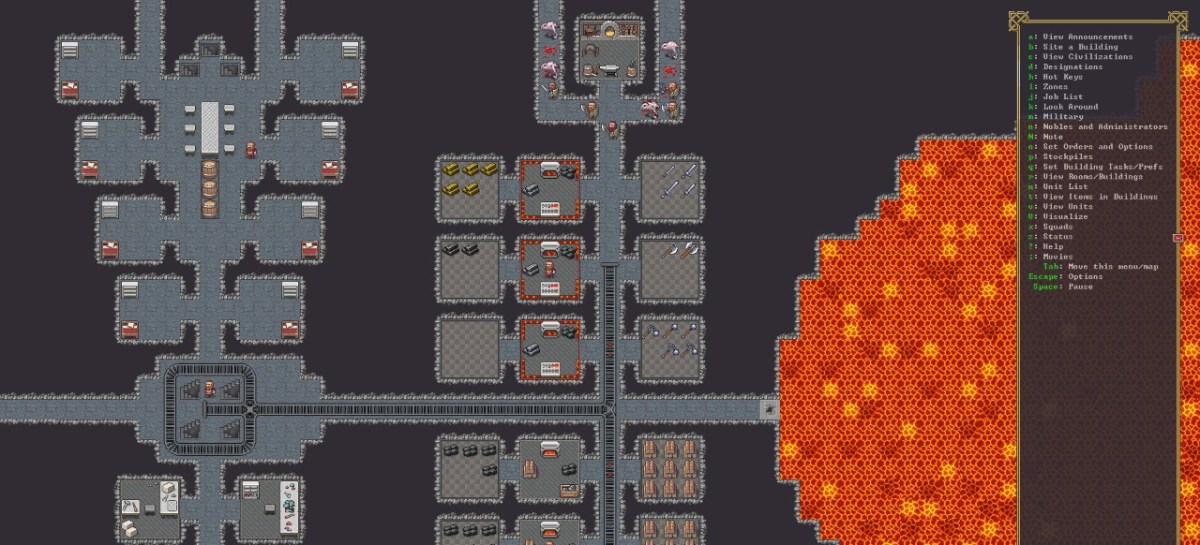 In der Wikipedia wird das klassische Dwarf Fortress, das als Freeware vertrieben und via Spenden finanziert wird (zur Website), so beschrieben: „Der Spieler führt eine Gruppe zwergischer Kolonisten an, die eine neue Festung gründen sollen. Da diese Zwerge unter der Erde wohnen, ist die Simulation dafür ausgelegt, innerhalb eines Berges bzw. unterirdisch zu bauen. Es ist aber durchaus möglich, eine Siedlung auf der Erdoberfläche als Burg o. ä. zu bauen. Der Spieler kann bestimmen, ob die Zwerge eine Festung bauen, eine vorhandene Festung einnehmen oder ob ein einzelner Zwerg auf Abenteuerreise geht und gegen feindliche Lebewesen kämpft (‚Adventure Mode‘; dieser Modus ähnelt spielerisch einem Rogue-like). (…) Das Spielprinzip ähnelt einer Sandbox. Ein konkretes Ziel existiert nicht.“