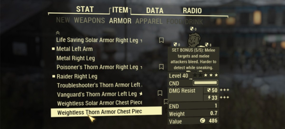 - Stapel-Gewicht – Große Stapel von Gegenständen wie Nahrung, Chems und Munition können ganz schön schwer werden! In Zukunft werdet ihr beim Auswählen eines beliebigen stapelbaren Gegenstands in dessen Details das Gesamtgewicht dieses Stapels finden. Dadurch erkennt ihr leichter, was da genau euren Lagerplatz verbraucht.