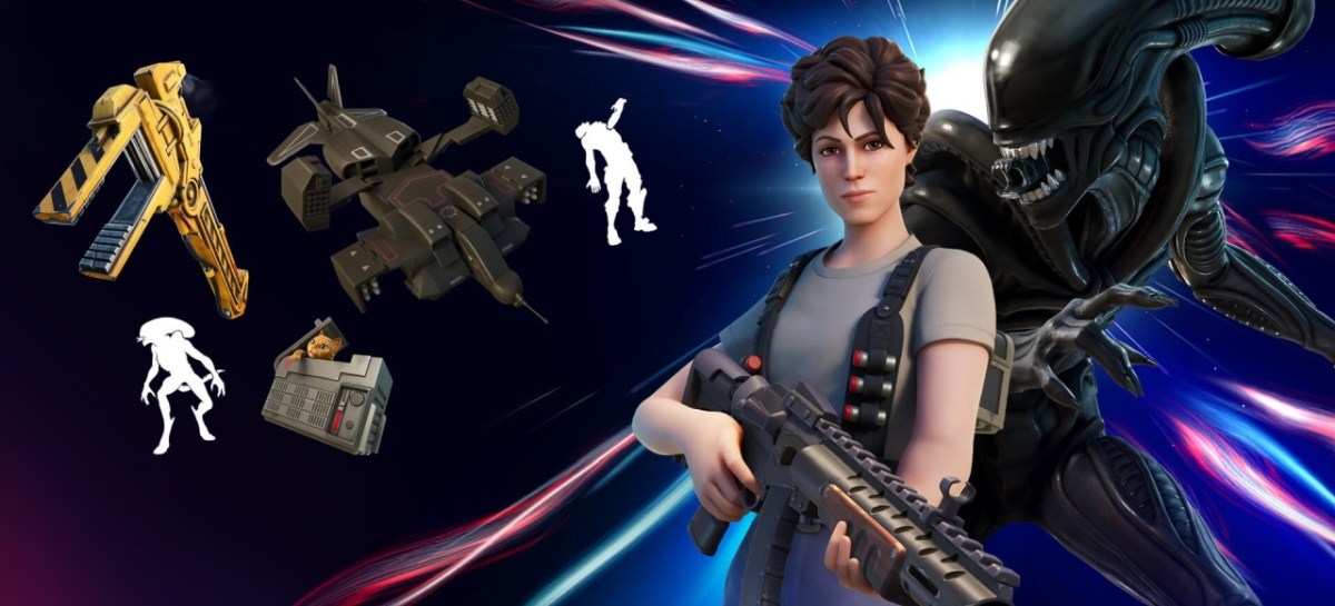 Seit dem 25. Februar 2021 sind Ellen Ripley und der Xenomorph aus Alien im Online-Shooter Fortnite unterwegs, wie Epic Games mitteilt: „Agent Jonesy hat bei seiner Suche nach den besten Jägern einen düsteren, stürmischen Zwischenhalt auf LV-426 eingelegt. Jetzt gibt es sowohl gute Neuigkeiten… als auch schlechte.