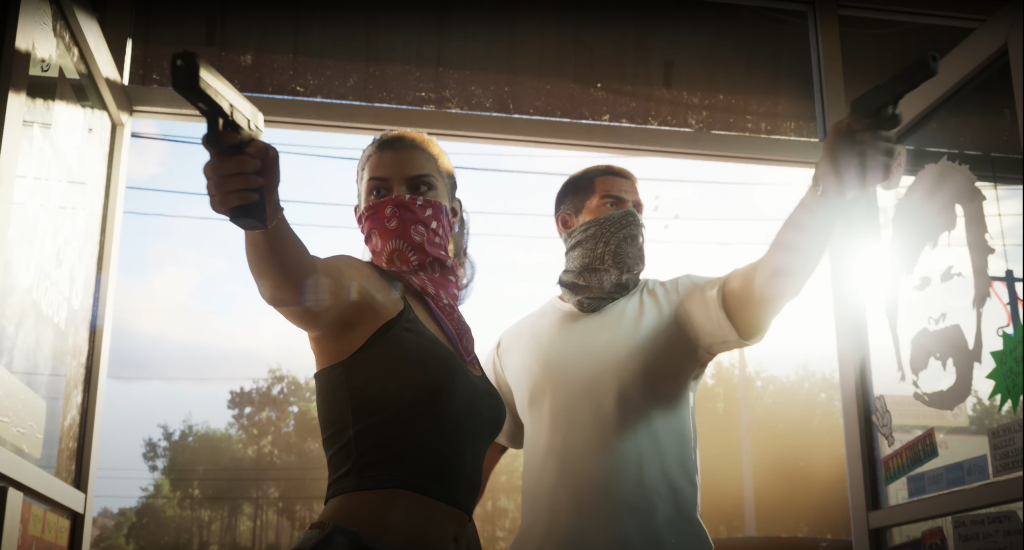 Nachdem wir in Grand Theft Auto 5 drei Protagonisten hatten, die alle ihre eigenen Quests, aber auch miteinander verwobene Storylines hatten und zwischen denen man jederzeit wechseln konnte, werden es in GTA 6 aller Wahrscheinlichkeit zwei Hauptcharaktere sein. Lucia und Jason heißen die beiden und wenn man dem roten Faden des Trailers folgt, führen sie eine Bonnie-und-Clyde-artige Liebesbeziehung.