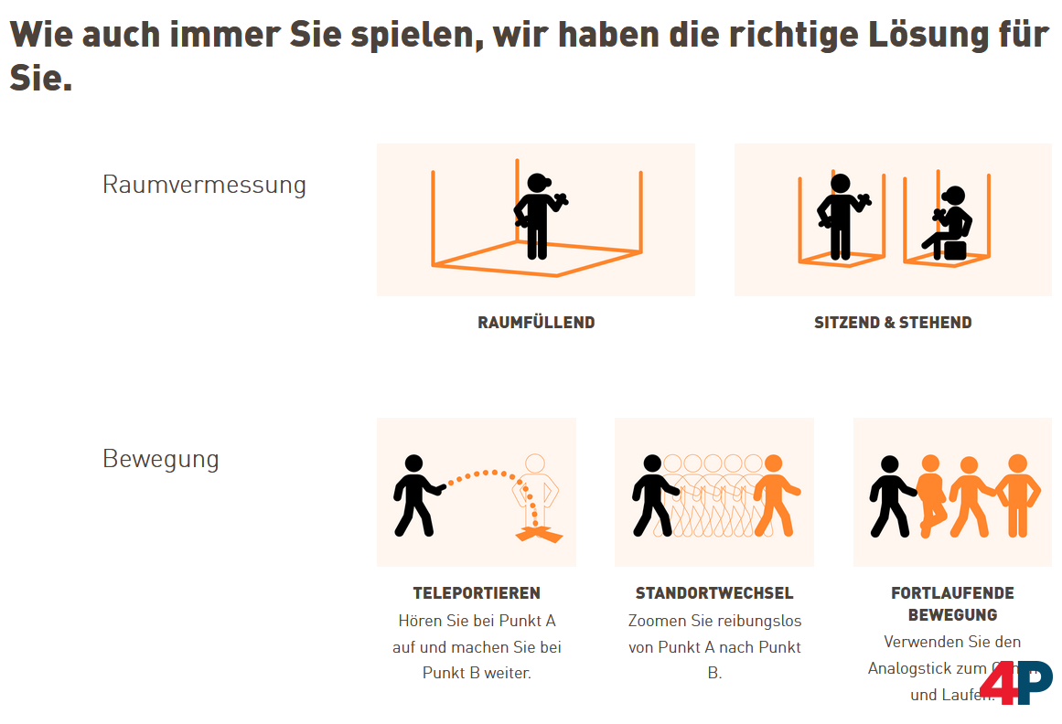 Zudem geht die Seite auch auf die im Spiel angbotenen Bewegungsschemata ein (hinterm 4P-Logo steht übrigens das Wort „Gehen“):