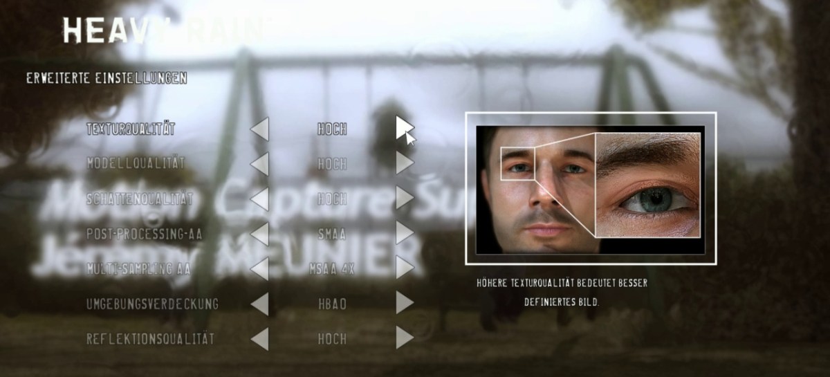 Einen Überblick über sämtliche PC-Optionen (Grafik, Sound, Steuerung) bekommt ihr auf den folgenden Screenshots. Ob „Heavy Rain Chronicles: Episode One – The Taxidermist“ ebenfalls in der PC-Fassung enthalten ist, konnte uns die PR-Agentur bisher nicht beantworten.