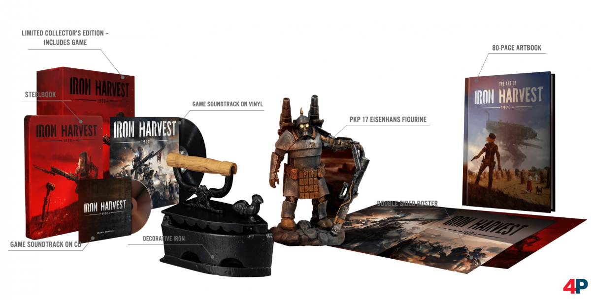 Zusätzlich zur Collector’s Edition (79,99 Euro) wird Iron Harvest ebenfalls als Hot Iron Edition mit einem Deko-Bügeleisen für 199,99 Euro erscheinen. Die Hot Iron Edition wird exklusiv über den Game-Legends-Shop vertrieben. Die „normale“ Sammler-Edition ist über den Game-Legend-Shop und bei weiteren teilnehmenden Händlern erhältlich.