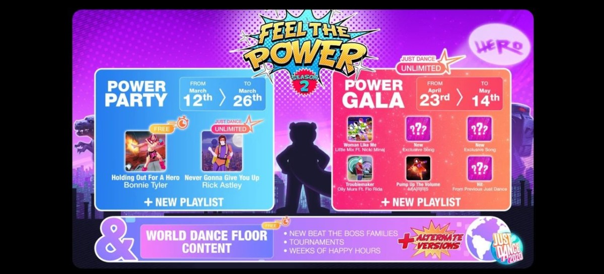 Mit Feel The Power hat Ubisoft am 12. März die zweite Season in Just Dance 2020 auf Nintendo Switch, Xbox One, PlayStation 4 und Google Stadia eingeläutet. Das neue kostenlose Update bringt zwei themenbasierte Inhalte: „Die Powerparty startet am 12. März und läuft bis zum 26. März. Sie bietet ein neues Boss-Familien-Turnier, eine Playlist sowie zwei Songs, welche über Just Dance 2020 zugänglich sind: