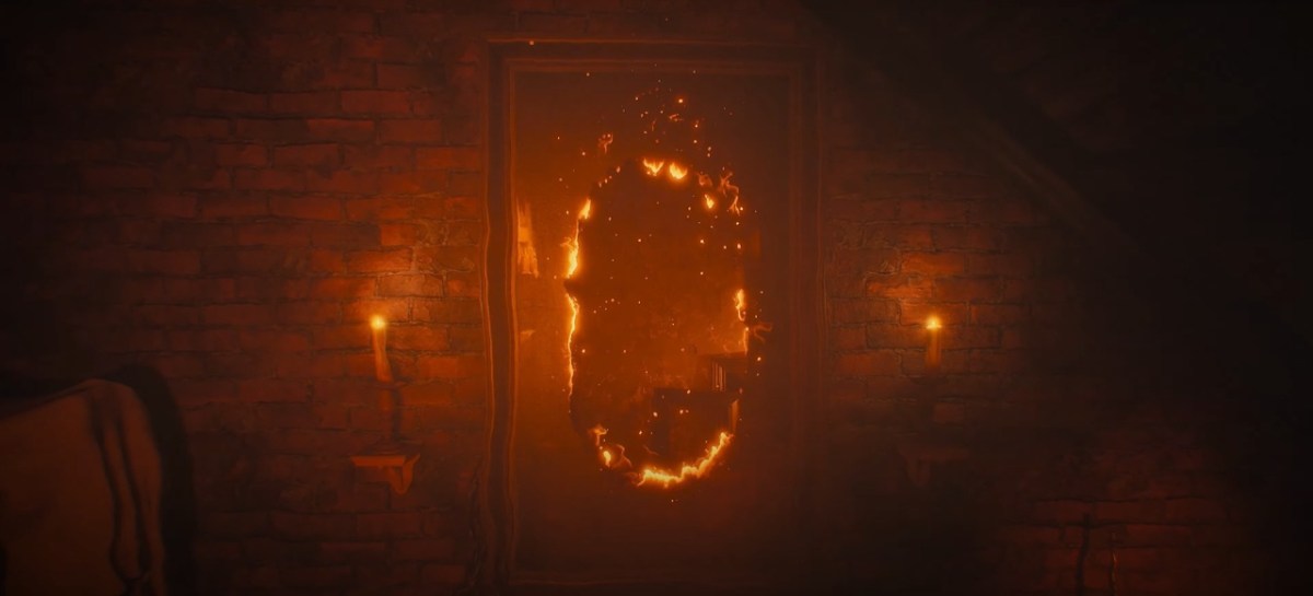 Während wir in einem Mix aus In-Engine-Footage und Gameplay-Aufnahmen der Spielfigur durch ein angsteinflößendes Horror-Haus folgen, ertönt die eingangs beruhigende Stimme der Frau im Hintergrund. Ihre Worte werden allerdings immer dramatischer, bis sie verspricht, die Zeichnungen „vernarbt, zerbrochen, vor der Welt versteckt, gefangen in diesem Haus“ halten zu wollen. Dabei spitzt sich auch die Lage in den gruseligen Gängen des Gebäudes weiter zu, in denen plötzlich Möbelstücke durch die Gegend fliegen und wir durch einen flammenden Flur voller stählerner Ketten, die von den Wänden hängen, geführt werden.