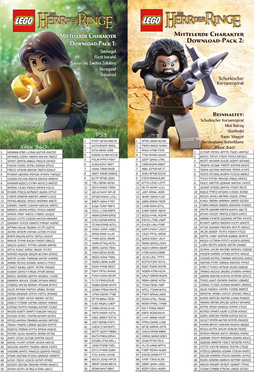 Aufmerksame Leser unserer Facebook-Seite haben diese Codes wahrscheinlich längst abgestaubt: Charakter Pack 1 und 2 für Lego Der Herr der Ringe (PS3, 360).