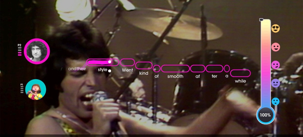 - Feat.: Teamwork ist der Schlüssel zum Erfolg! Spiel mit einem Freund oder singe ein Duett mit dem legendären Freddie Mercury im Einzelspielermodus. Je besser die Stimmen zusammenpassen, desto höher ist die „Kompatibilitäts-Punktzahl“.