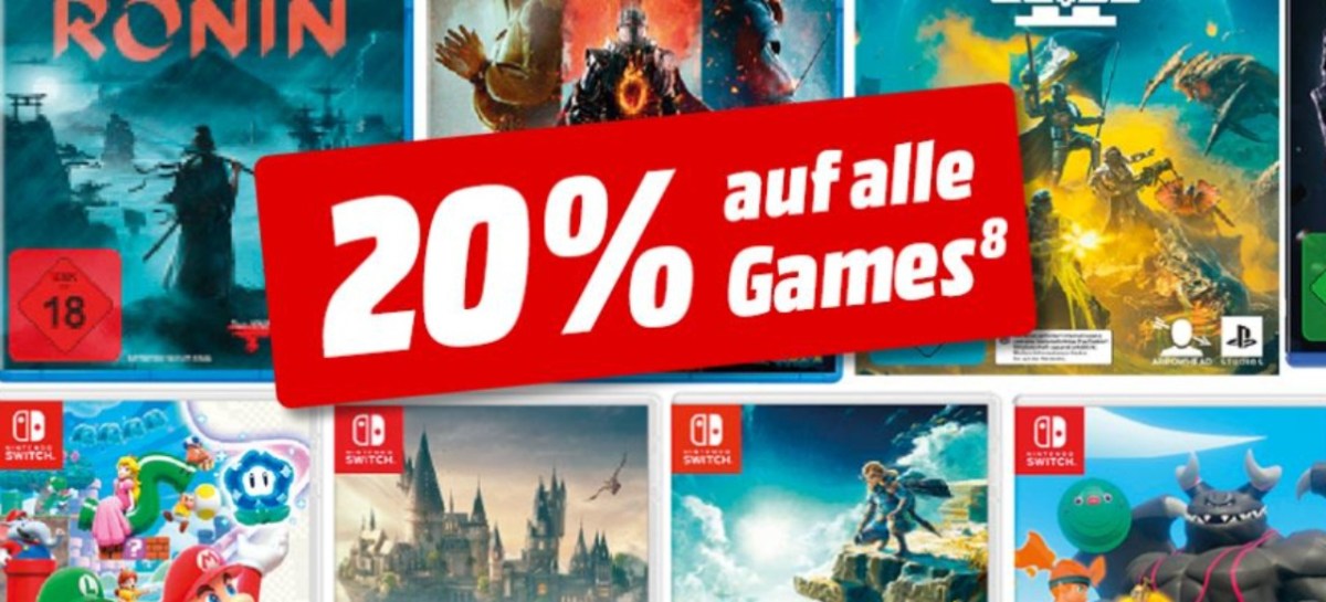 Die Osteraktion bei Amazon ist vorüber, doch MediaMarkt hat noch immer nicht genug: Für nur kurze Zeit könnt ihr hier so richtig sparen – nämlich ganze 20 Prozent auf alle Spiele, die der Elektronikriese für die PS5, die Nintendo Switch, die Xbox Series und den PC im Angebot hat.