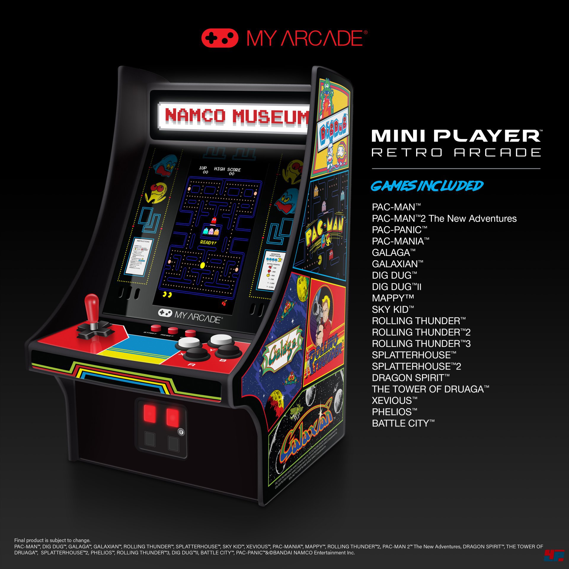 Sofern vorhanden handle es sich stets um die originalgetreue Spielhallen-Fassung, die auf dem vertikalen Bildschirm dargestellt wird. Hergestellt wird die Hardware in Kooperation mit der Firma „My Arcade“, die bereits Mini-Automaten von Spielen wie Pac-Man, Galaga oder Dig Dug herausgebracht hat. Das neue Gerät besitzt frontal abstrahlende Stereo-Lautsprecher, einen abnehmbaren Joystick, ein hintergrundbeleuchtetes Marquee und eine Coin-Trap.