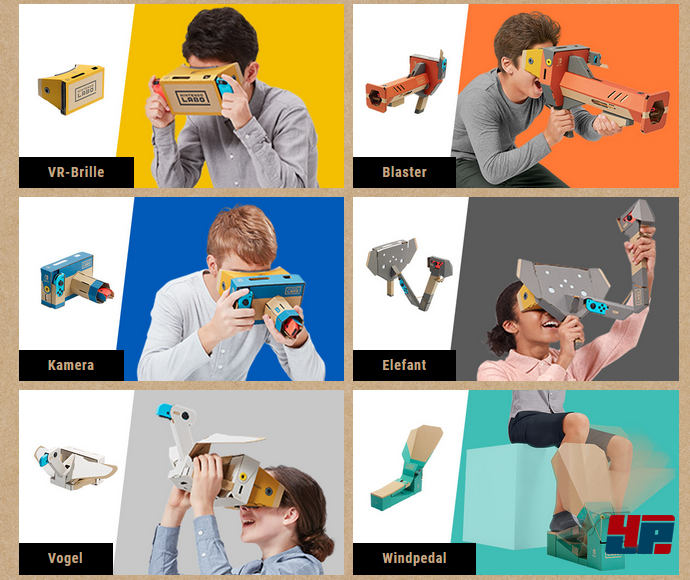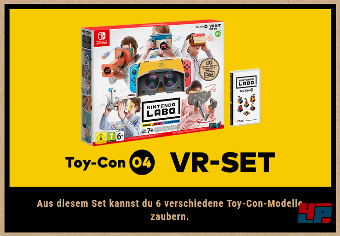 Nintendo Deutschland schreibt: „Jedes der enthaltenen Toy-Con bietet eine Reihe an Erlebnissen, die taktiles Feedback mit spannenden, virtuellen Abenteuern verbinden. Da ist zum Beispiel das Toy-Con-Windpedal, mit dem Luftstöße erzeugt werden, die den SpielerInnen das Gefühl vermitteln, dass ihnen beim Fliegen die Luft um die Nase weht. Oder: Der Toy-Con-Blaster, der immer erst geladen werden muss, bevor er Laserstrahlen oder Obst verschießen kann. SpielerInnen können unterschiedliche Modelle wie den Toy-Con-Elefanten oder die Toy-Con-Kamera aus Pappe bauen und sie in einer Vielzahl von VR-Spielen einsetzen. Ganz wie in anderen Nintendo Labo-Sets können SpielerInnen auch entdecken, wie die das alles funktioniert und mithilfe der enthaltenen Programmierfunktion sogar ihre eigenen kleinen VR-Spiele erfinden. (…) Alle Spiele lassen sich statt in VR auch in 2D spielen. Dazu muss der VR-Modus einfach nur ausgeschaltet werden. Die Spieler verwenden dann die mitgelieferte Bildschirmhalterung anstelle der Toy-Con-VR-Brille.“