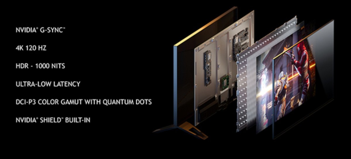 Bei der CES 2018 (Consumer Electronics Show) in Las Vegas hat NVIDIA eine neue Generation von Großformat-Gaming-Bildschirmen (BFGD: Big Format Gaming Display) angekündigt. Die BFGDs wurden in Zusammenarbeit mit den Hardware-Herstellern Acer, ASUS und HP entwickelt und bieten eine Bildschirmdiagonale von 65 Zoll (ca. 165 cm). Das 4K-120-Hz-HDR-Display (3840×2160; direkte Hintergrundbeleuchtung, Leuchtdichte von 1.000 Nit und DCI-P3-Farbskala) unterstützt G-Sync (Bildwiederholfrequenz des Displays wird mit der des Spiels synchronisiert). Der auf Android TV basierende Media-Streamer Shield ist ebenfalls integriert. NVIDIA verspricht außerdem sehr niedrige Latenzzeiten, vor allem im Vergleich zu „normalen 4K-Fernsehern“.
