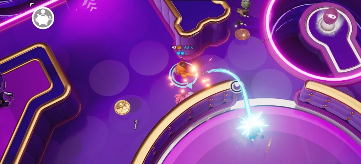 „Curve your shots and be the last player standing in this adorably frenetic, fast-paced eight player combat game that tests your speed and creativity. Outcasters is a chaotic multiplayer combat game for you and up to eight players. Battle your way across arenas and curve your shots to creatively defeat your opponents. With customisable Outcasters and all sorts of power-ups it’s a chaotically fun multiplayer arena game that gives a hook-shot an all new meaning.“