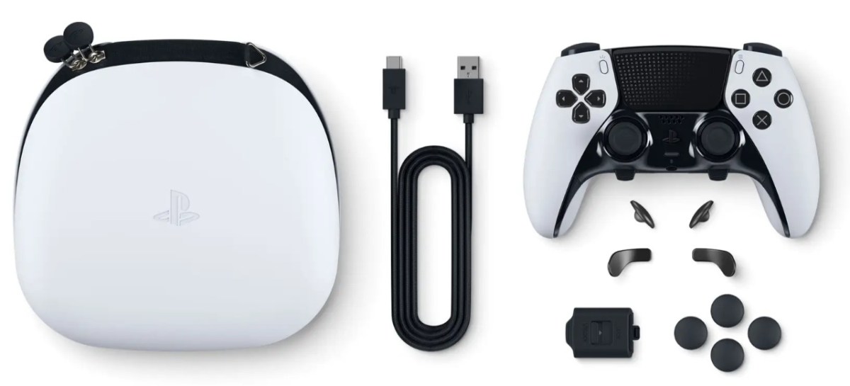 Damit ist der DualSense Edge rund 100 Euro teurer als der Xbox Elite-Controller, der sich in seiner Funktion als bessere Alternative zum normalen Gamepad wohl am besten als Vergleich heranziehen lässt, und gleich dreimal so teuer wie ein regulärer DualSense. Der Lieferumfang des DualSense Edge sieht dem offiziellen PlayStation-Blog zufolge so aus: