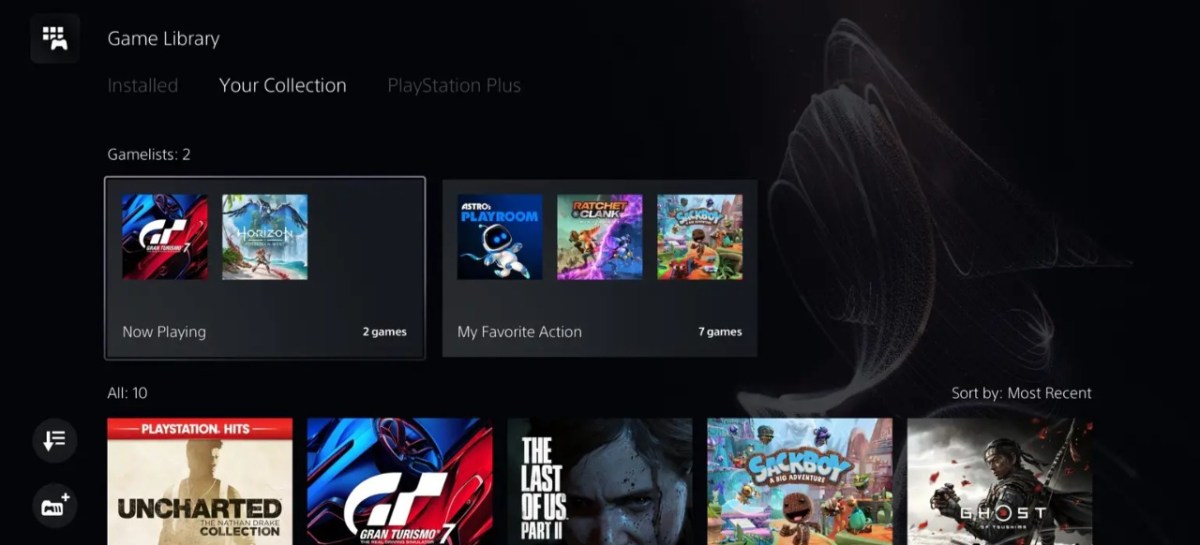 Mit den Gamelists habt ihr endlich eine Möglichkeit, eure Bibliothek auf der PS5 vernünftig zu verwalten. Gleich 15 Listen könnt ihr parallel erstellen, die sich wiederum mit bis zu 100 Titeln füllen lassen. So kommt das beliebte Ordner-Feature der PS4 zumindest in ähnlicher Form zurück und es ist nun möglich, verschiedene Listen, beispielsweise für die Sortierung nach Genre oder für Titel, die du noch offen hast, anzulegen.