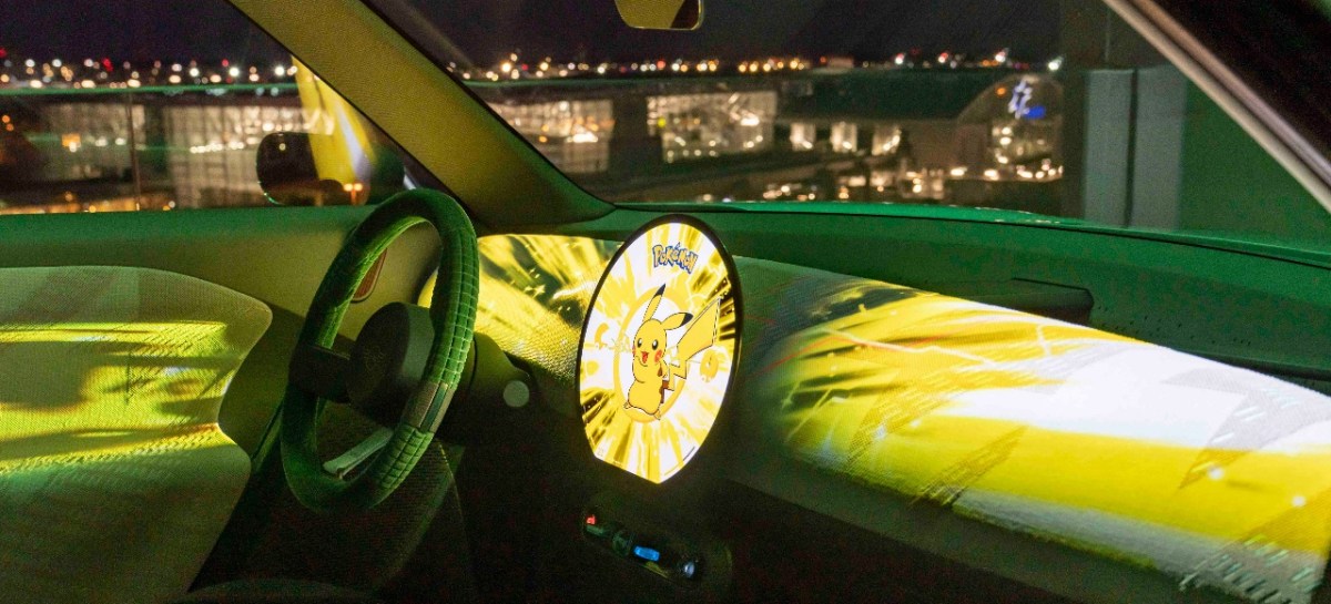 Ein paar Touch-Eingaben später – die Dunkelheit des späten Abends spielt dem Auftritt in die Hände – durchzucken Blitze und der Sound von britzelnden, elektrischen Ladungen den Innenraum. Keine Frage, wer hier nur wenige Sekunden später seinen Auftritt feiert: Das grellgelbe Blitzgewitter erreicht seinen Höhepunkt in der animierten Darstellung von Pikachu auf dem OLED-Display. Auch per Projektoren auf der Unterseite des Fahrzeugs wird das gelbe Elektro-Pokémon auf den Asphalt gezaubert und begeistert für ein paar Sekunden die umstehende Menge.
