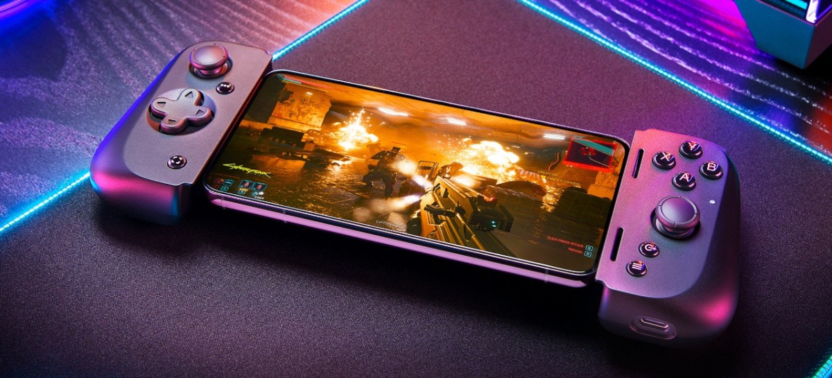 Der Razer Kishi ist eine Halterung für Smartphones, der ein Telefon mit Joycon-ähnlichen, an den seiten angebrachten Controller-Elementen in ein Handheld verwandelt. Natürlich mit Schultertasten, Analog-Sticks und einem D-Pad.