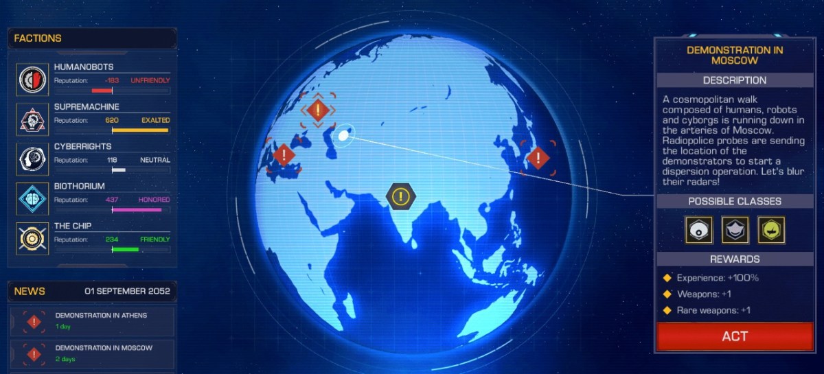 Dein Aufstand wird einzigartig sein! Jede deiner Entscheidungen hat Einfluss auf den Zufallsgenerator und folgende Missionen! Außerdem bestimmst du mit ihnen deine Beziehung zu den 5 unterschiedlichen Fraktionen des Spiels.