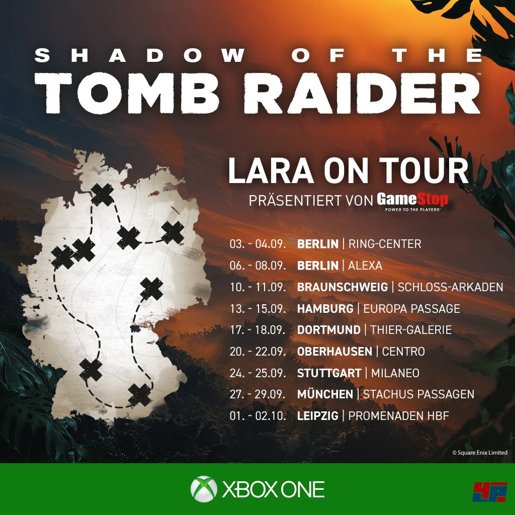 Square Enix wird Lara Croft in Kooperation mit Microsoft und GameStop auf Deutschland-Tour schicken, um Spielern die Möglichkeit zu geben, Shadow of the Tomb Raider ausführlich auf Xbox One X anzuspielen und exklusive Preise zu gewinnen.