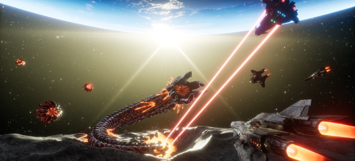 Die Düsen des Fighters lassen sich in verschiedene Modi umschalten. Dadurch rüstet man sich z.B. für Verfolgungsjagden, Dogfights oder Ausweichmanöver zwischen Asteroidenfeldern, in denen sich Gegner versteckt haben. Eingerahmt wird all das von einer „voll vertonten, kooperativen Kampagne“.