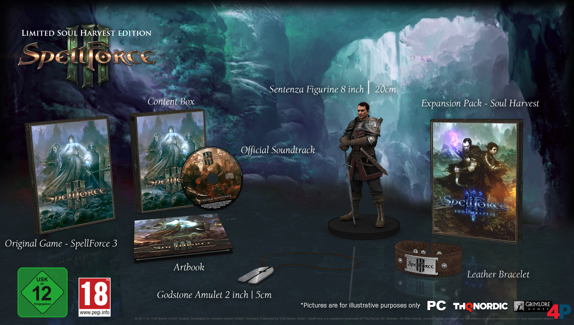 Außerdem wurde eine Collector’s Edition angekündigt. Die SpellForce 3 Limited Soul Harvest Edition umfasst SpellForce 3, das Erweiterungspaket Soul Harvest, eine Sentenza-Figur (20 cm), Soundtrack, Artbook, Gottstein-Amulett (5 cm) und ein Lederarmband.