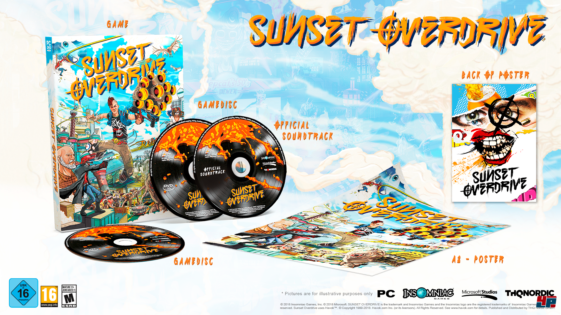 Vor einigen Tagen tauchte bei Amazon eine Produktwebseite der PC-Version von Sunset Overdrive auf (wir berichteten). Die von THQ Nordic vertriebene Box-Version wird knapp 20 Dollar kosten und sämtliche Download-Erweiterungen (Weapons Pack, Mystery of Mooil Rig und Dawn of the Rise of the Fallen Machines) umfassen. Als Releasetermin wurde bereits der 16. November 2018 vorweggenommen.