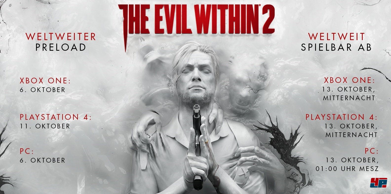 Ergänzend zu den Systemanforderungen der PC-Version (siehe unten) hat Bethesda weitere Einzelheiten zu den Grafik-Optionen auf PC, den Konsolen-Systemanforderungen, dem Preload-Datum (Vorabdownload) und dem exakten Veröffentlichungszeitpunkt von The Evil Within 2 bekanntgegeben. Auf PlayStation 4 und Xbox One wird das Survival-Horrorspiel am Freitag, den 13. um Mitternacht freigeschaltet. Die PC-Version wird um 01:00 Uhr via Steam verfügbar sein.