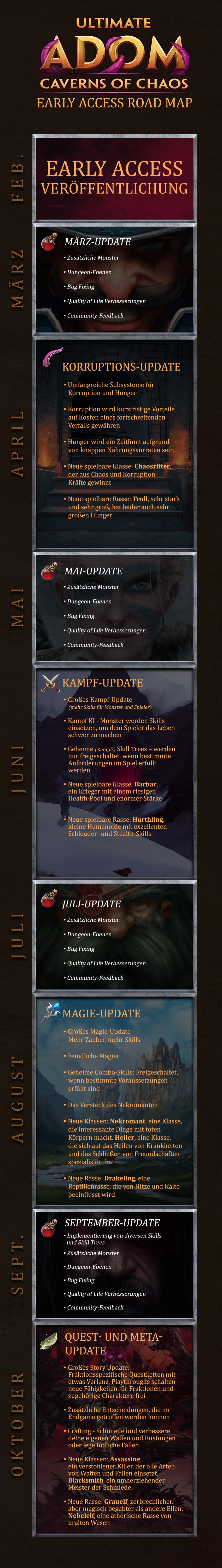 Publisher Assemble Entertainment und Entwickler Team ADOM: „Das Hardcore-RPG ist aktuell im Early Access auf Steam für Windows-PC, Mac und Linux für 19,99 Euro erhältlich. (…) In Ultimate ADOM erwartet RPG-Fans unbegrenzter Wiederspielwert dank endloser, prozedural generierter, interaktiver Dungeons mit unzähligen Gegnerhorden und einer großen Menge an Fertigkeiten, Zaubern und Gegenständen. Es kann jederzeit zwischen Grafik- oder ASCII-Modus gewechselt werden – für alle, die es richtig ‚Oldschool‘ mögen. In beiden Modi kann man zwischen 3D- oder Top-Down-Ansicht umschalten. Zu einer Fortsetzung eines Klassikers gehört natürlich eine kernsanierte Steuerung. Eine moderne UI und zusätzliche Controller-Steuerung sorgen für eine intuitive Bedienung.“