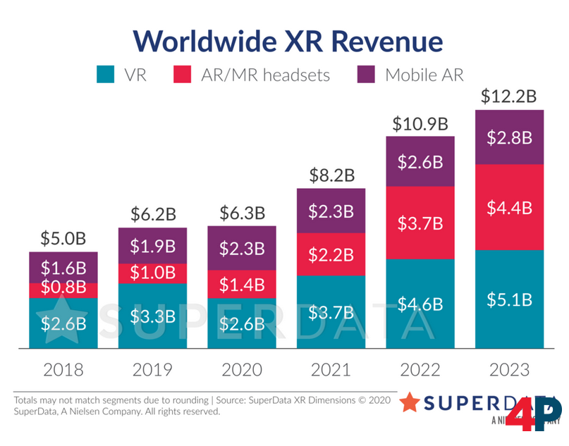 Passend dazu senkte auch SuperData (das sich auf die Analyse von Download-Spielen spezialisiert hat) seine Prognose für die Branche im Bereich von Virtual-Reality-Hardware und -Software. Statt ursprünglich angenommener 7,7 Mrd. Dollar Einnahmen im Jahr 2020 geht der Analyst mittlerweile von 6,3 Mrd. Dollar aus. Die Auswirkungen der weltweiten Krise machten sich deutlich bemerkbar – so das Marktforschungsunternehmen – manche Sektoren bereiteten sich aber auf einen Aufschwung in der zweiten Jahreshälfte vor.