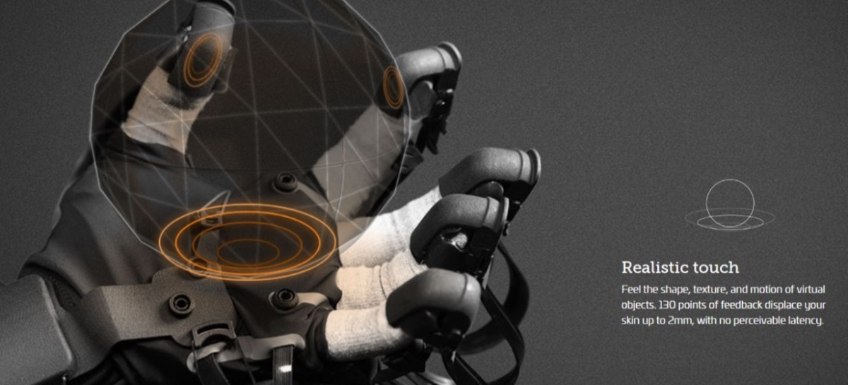 Das Wort Gegendruck ist vermutlich nicht ganz korrekt, denn aus Sicherheitsgründen (damit keine Verletzungsgefahr aufkommt) verzichten die Entwickler auf eine aktive Bewegung der Handschuh-Elemente mit Motoren oder ähnlichem. Es gibt lediglich „Bremsen“, welche z.B. die Bewegungen der Finger an der passenden Stelle stoppen.