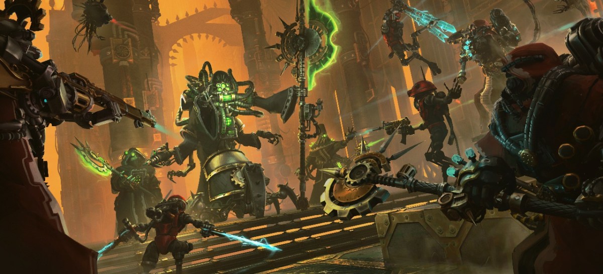„Stelle dich erschreckend vertrauten Feinden, einer Kohorte aus häretischen Tech-Priests, die vom Glauben abgefallen sind und nicht mehr im Namen des Omnissiah leben. Kannst du, Magos Dominus Faustinius, gleichzeitig gegen einen Angriff der Necrons vorgehen, während deine Einheit von innen untergraben wird?“