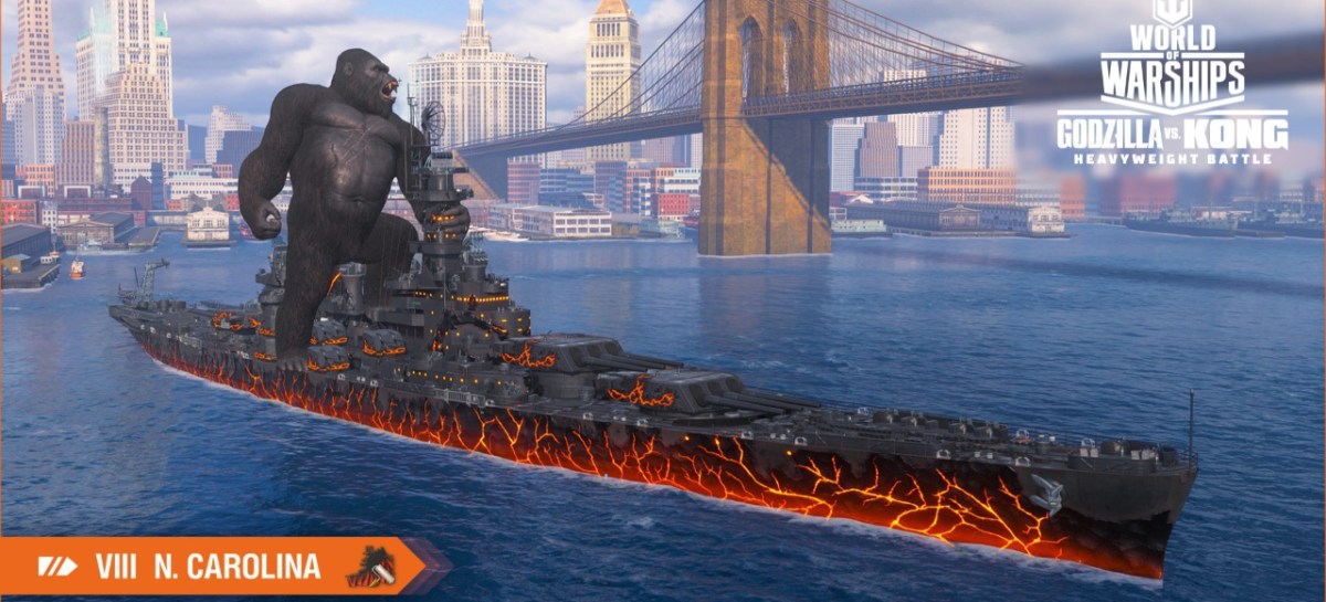Wargaming: „Der epische Kampf der Titanen von Legendary Entertainment geht weiter: In einem einzigartigen, zeitlich limitierten Event gibt es in World of Warships passend zum Monster-Movie Godzilla vs. Kong exklusive In-game-Aktivitäten und Items. Fest dazu entschlossen, ein und für alle Mal ihre Differenzen aus der Welt zu schaffen, sind Godzilla und Kong als Kommandeure im Spiel mitsamt Voiceover und visuellen Effekten an Bord. Zusätzlich gibt es eine ganze Reihe an besonderen Missionen für alle Spieler von World of Warships. (…) Die Missionen sind in Zufalls-, Ranglisten- und Koop-Modi sowie in Operationen mit Schiffen der Stufe V-X verfügbar. Um an diese exklusiven Inhalte zu gelangen, können die Spieler zwischen drei verschiedenen Bundles zum Thema wählen. Kong: Primordial Rage enthält Kommandeur Kong mit 10 Fertigkeitspunkten und einem einzigartigen Voiceover, die North Carolina mit permanenter Primal-Tarnung und eine Gedenkflagge mitsamt thematischer Tarnung. Das Pendant dazu, Godzilla: Apex Monster, kann mit Kommandeur Godzilla, 10 Fertigkeitspunkten, einem einzigartigen Voiceover und der Amagi mit permanenter Heat Ray-Tarnung, einer Gedenkflagge sowie passender Tarnung aufwarten. Im Titans: Large Pack Bundle werden sowohl Kong als auch Godzilla als Kommandeure mit ihren zugehörigen Kriegsschiffen und dem Rest der genannten Inhalten angeboten.“