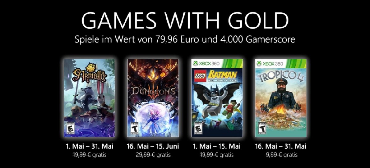 Abonnenten von Xbox Live Gold und auch vom Xbox Game Pass Ultimate erhalten im Mai 2021 im Rahmen von „Games with Gold“ wieder Zugriff auf vier Spiele. Dabei stehen den Nutzern zwei Titel speziell für Xbox Series X|S sowie Xbox One und zwei weitere Spiele für Xbox 360 zur Verfügung, die sich dank Abwärtskompatibilität auch auf Xbox Series X|S und Xbox One spielen lassen.