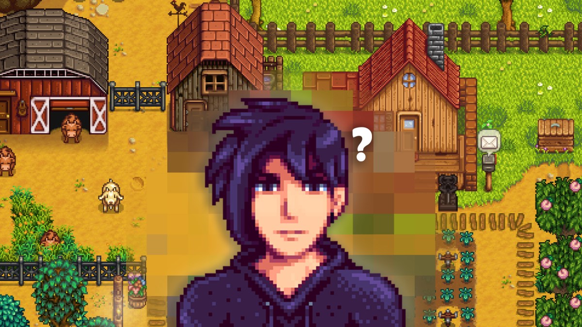 Charakter Sebastian aus Stardew Valley mit einem Fragezeichen.