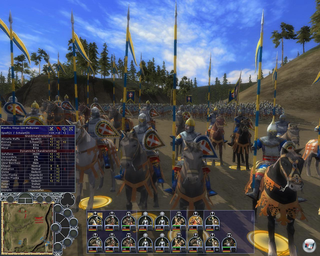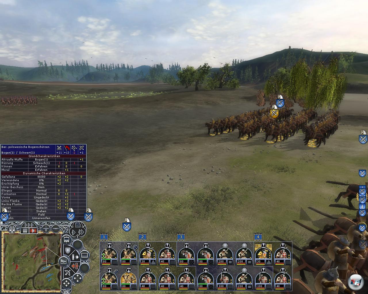 Wälder oder Brücken gnadenlos aus. Wie bei Medieval 2 sind es die es auch wieder die Hügel, von denen Schützen besonders effektiv ihre Pfeilhagel verschießen. Pfeil und Bogen entfalten ohnehin keine solch hohe Wirkung wie bei Total War. Flüsse lassen sich trotz Furten ohne größere Probleme fast überall überqueren, was nicht immer realistisch ist, wenn der Strom etwa zu tief ist. Denn ob sich die schwer beladenen Pferde samt Reiter ins Wasser trauen, ist die Frage, auch wenn sie gedrillt sind. Ein falscher Tritt und Ross und Ritter sind Geschichte, da ans Schwimmen mit einer schweren Rüstung nicht zu denken ist, mit der man nicht einmal ohne Hilfe aufs Pferd kommt.