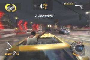 Na ja, drücken wir bei Szenario und Handlung mal beide Augen zu und hoffen, dass das Gameplay wenigstens ansprechend umgesetzt wurde. Im Story-Modus absolviert ihr jedenfalls diverse Straßenrennen und –kämpfe, bei denen ihr euch hinters Steuer eines gepimpten Boliden klemmt und mit Waffengewalt unliebsame Konkurrenten von der Straße pustet. Alternativ könnt ihr auch einem Kumpel das Schießen überlassen und euch rein aufs Fahren und Driften konzentrieren. Klingt ganz interessant, macht aber eigentlich nur online oder via System-Link halbwegs Spaß, weil die KI-Gegner, mit denen man sich in den Story-Missionen duelliert, absolute Sonntagsfahrer sind.