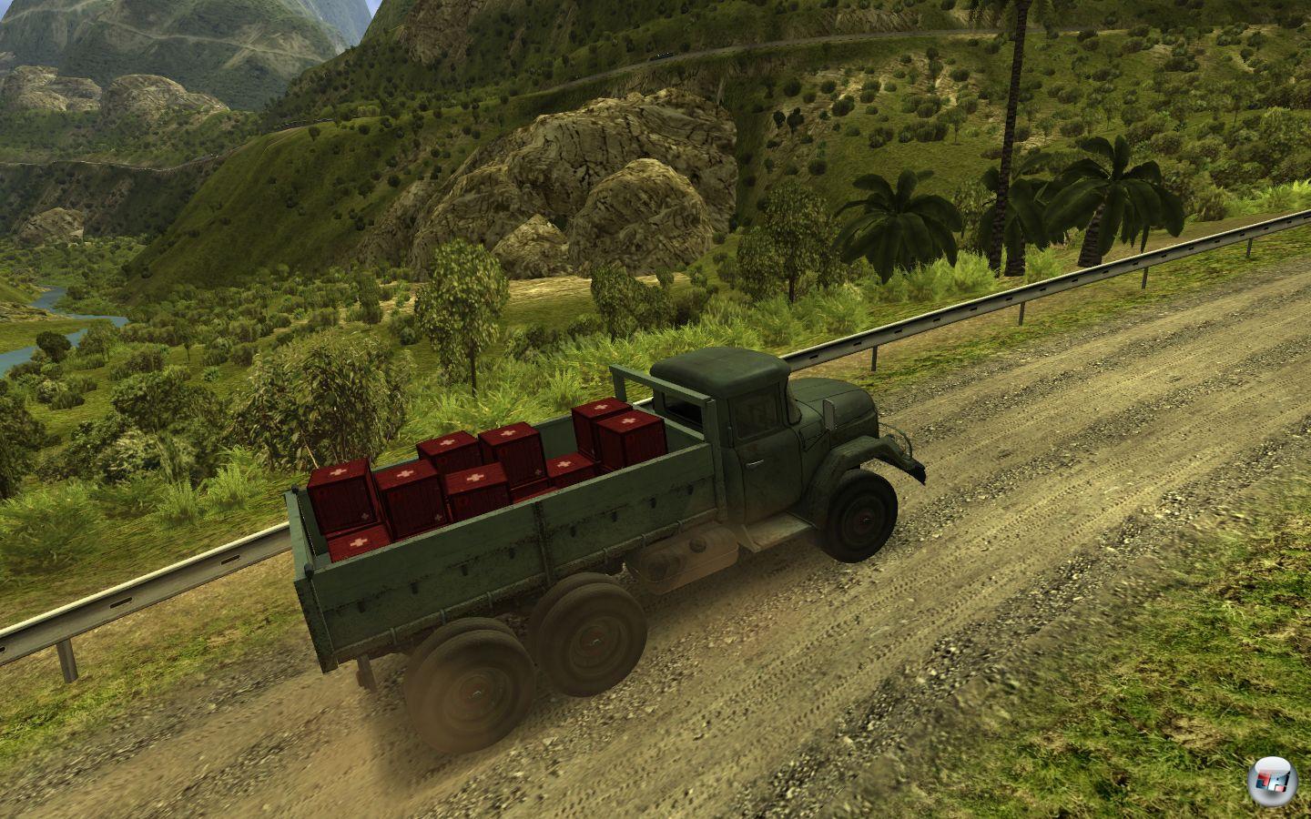 Etikettenschwindel kann man Rondomedia nun aber nicht vorwerfen, findet sich der Begriff „Simulation“ doch weder im Titel noch auf der Packung. Dort steht allerdings: „Dein Herz schlägt dir bis zum Hals – dein Puls wird rasen wie verrückt“ – und das ist gelinde gesagt lächerlich. Außer wenn man darüber nachdenkt, ob 30 ¬ für das Spiel gerechtfertigt sind, fällt mir jedenfalls keine einzige Situation ein, weswegen man beim Spielen in eine solche Gemütslage geraten sollte. Immerhin: Optisch macht das Spiel durchaus was her. Einen fitten PC vorausgesetzt, fährt man auf höchster Detailstufe durch ansehnliche und mitunter recht glaubwürdige Kulissen. Die 25 Trucks und teilweise auch die Ladungen wie Windkrafträder oder Bagger sind mitunter sehr detailliert, obschon die Originallizenzen der Zugmaschinen fehlen. Auch die Cockpitperspektive kann sich mit ihren funktionierenden Außenspiegeln und der zusätzlichen Möglichkeit, sich zu beiden Seiten umzusehen, durchaus sehen lassen. Hinzu kommen drei weitere Kameraperspektiven, die durch ein HUD-Display mit Informationen zu Geschwindigkeit, Gangzahl etc. ergänzt werden. Doch was nützt das alles, wenn sich jeder LKW gleich steuert? Wenn es sogar mit Force-Feedback überhaupt keinen Unterschied macht, ob ich über eine Eisplatte oder eine Sandpiste fahre und wenn Regen oder Schnee nichts anderes als hübsche grafische Spielereien bleiben? Die einzige mögliche Veränderung des „Schwierigkeitsgrades“ liegt darin, von der Automatik auf die manuelle Schaltung zu wechseln. Dann muss eben bis zu vierzehnmal genau eine Taste mehr gedrückt werden – na und? Das ist höchstens lästig, aber in diesem Spiel zumindest nicht herausfordernd, weil die Kisten wie von Geisterhand auch wunderbar im siebten von 14 Gängen „durchziehen“. Warum hat man hier nicht eine Kupplungsfunktion eingebaut? Was sollen Blinker, wenn es niemanden schert, ob ich sie benutze? Und wieso muss ich meinen Sattelschlepper nicht zumindest in so einer Art „Profi-Modus“ zu Beginn selber ankoppeln und bei Ankunft am Zielort abkoppeln? Wieso kann ich einen meterlangen Sattelzug einfach in einem Schwung auf enger Fahrbahn wenden? Diese stark arcadelastige Spielmechanik ist ganz offensichtlich dem Wunsch geschuldet, ein möglichst breites Publikum anzusprechen. In der Folge befördert mein fünfjähriger Sohn die Trucks sicher ans Ziel! Immerhin: Die übrigen Verkehrsteilnehmer agieren bei weitem nicht so dösig wie im hauseigenen Bus-Simulator 2009 und mein Bolide fällt auch nicht um, wenn ich gegen ein Straßenschild fahre. Doch den einen oder anderen Physik- Aussetzer musste ich schon beobachten: Da wurde mir in den Anden nach einem Zusammenstoß kurzerhand ein zweiter Lieferwagen aufs Dach gelegt!