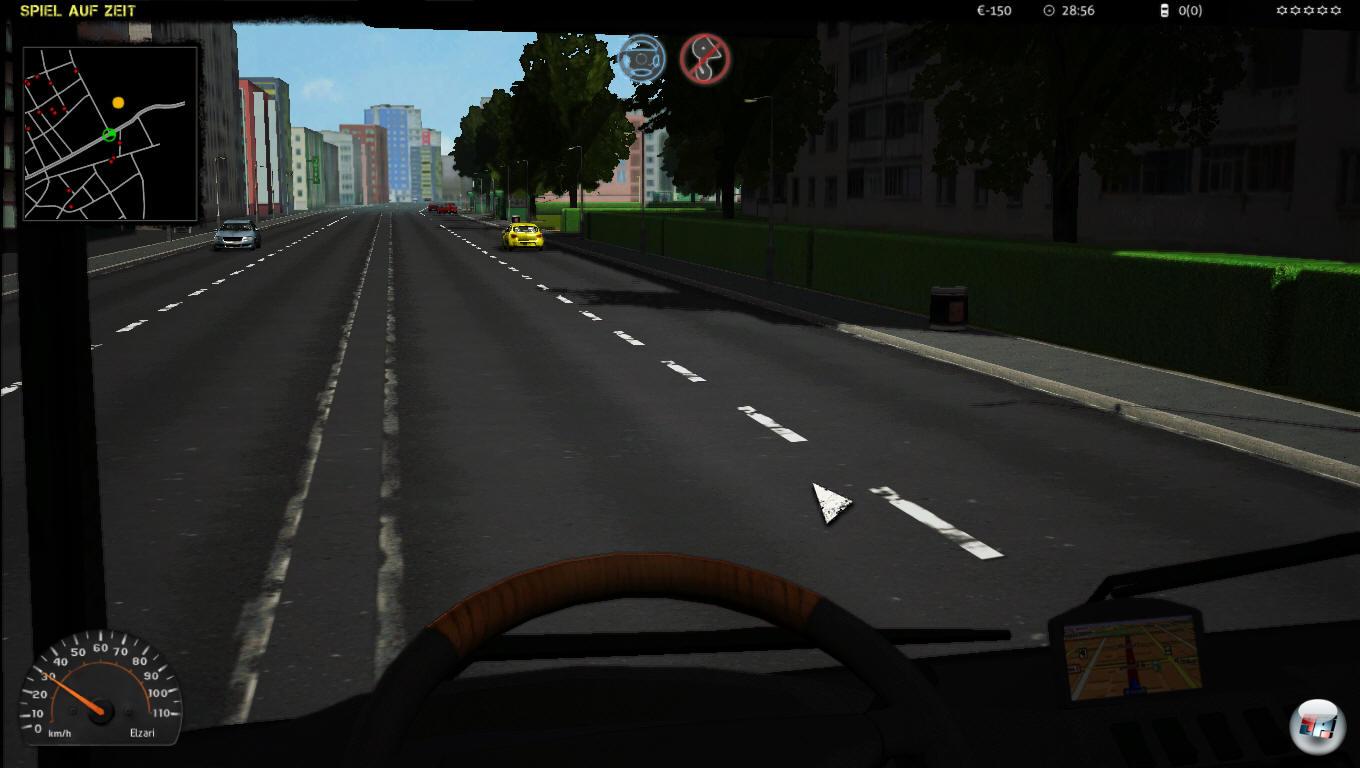 Casual oder Alltagssimulationsspieler müssen schon harte Hunde sein, zumindest in den Augen der Entwickler. Auch bei dieser Abschlepp-Sim glänzt das Tutorial nämlich durch Abwesenheit. Begrüßt werde ich auf dem Parkplatz des Fuhrparks lediglich mit dem Hinweis „F1 für Hilfe“ drücken zu können. Gesagt getan und da ist sie: Die vielleicht kürzeste Spielanleitung der neueren Videospielgeschichte – ein Screenshot mit den verfügbaren Tastaturbefehlen! An so etwas kann ich mich, wenn überhaupt, dann nur aus seligen C-64 Zeiten erinnern. Nun gut, zunächst entnehme ich der „Anleitung“ wie ich in die Cockpitsicht wechseln kann, denn damit steuert es sich im Allgemeinen realistischer- und darum geht es ja schließlich in einer Simulation. Nachdem mir in Ermangelung einer Sprachausgabe erneut per Texteinblendung mitgeteilt wurde, dass es sich bei den roten Punkten um Falschparker handelt, die es abzuschleppen gilt, fahre ich den ersten „Tatort“ an. Auf dem Weg dorthin touchiere ich ein Stopp-Schild, was mit einem Geräusch und einem Geldabzug von 35 Euro geahndet wird. Endlich mal Sanktionen, das ist doch mal was! Bei meinem ersten „Kunden“ angekommen, möchte ich mich an die Arbeit machen, doch mir wird kurzerhand mitgeteilt, das Auto sei zu schwer für mein Fahrzeug…aha?! Ergo: Es muss wohl auch die Möglichkeit geben, schwere LKW zu steuern? Abwarten. Zunächst gilt es ein geeignetes Opfer zu finden und dank der Tatsache, dass in der fiktiven Stadt offensichtlich mehr Autos falsch als korrekt parken, gelingt mir das recht schnell. Endlich darf ich mich ans Abschleppen wagen. __NEWCOL__
