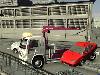 Nachdem ich mein Fahrzeug in eine geeignete Position zum Missetäter gebracht habe, versuche ich die Laderampe abzusenken. Ich vernehme auch ein deutliches Motorgeräusch, aber es tut sich nichts! Also versuche ich es mit dem Kran und der funktioniert immerhin. Die Steuerung ist sogar recht vernünftig programmiert und schon kurze Zeit später „parkt“ der PKW auf meiner Ladebühne. Dann geht’s zurück zum „Stützpunkt“, wo der Wagen an einer beliebigen Stelle abgeladen wird, um den Auftrag abzuschließen. Daraufhin werden meinem Startkapital von 60.000 Euro die standardmäßigen ca. 300 Euro gutgeschrieben und der nächste Auftrag generiert, der genauso abläuft wie der vorherige, nur dass das Auto jetzt woanders steht, eine „Panne“ hat und rot statt schwarz ist. Wer das lange genug erträgt, hat nach etwa zwei Stunden genügend Geld für das erste von vier „neuen“ Fahrzeugen, das sich aber nur in einer Hinsicht deutlich vom ersten unterscheidet: Ich kann endlich auch die Rampe plus Seilwinde einsetzen.