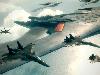Natürlich kann man mäkeln, dass der Boden beim Tiefflug zu Matsch verschwimmt oder dass Häuser und Panzer eher grobklotzig daherkommen – aber die bekommt man normalerweise nur aus der Höhe oder lediglich für einen Sekundenbruchteil aus der Nähe zu sehen, so dass das nicht die geringste Rolle spielt. Und natürlich wird’s immer wieder mal unübersichtlich: Pfeile weise in alle Richtungen, potenzielle Ziele sind gleich dutzendfach markiert, das HUD zeigt alle möglichen Infos an, pausenloses Geschnatter dringt aus dem Funkgerät – aber anders will man es bei einem derartigen Spiel gar nicht haben, und im Zweifelsfall ist es immer noch übersichtlicher als das in dieser Hinsicht vergleichbare Project Sylpheed. Ace Combat 6 ist eines der wenigen Spiele, dem Screenshots, unabhängig davon, wie hübsch sie auch sind, einfach nicht gerecht werden – deswegen verweisen wir euch treusorgend auf unsere Trailer-Sammlung. In denen seht ihr allerdings nicht, wie erschreckend kurz die Ladezeiten sind.