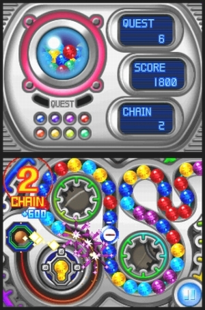 gespielt, entweder auf PC oder Xbox 360 – Actionloop ist im Wesentlichen das gleiche Spiel, nur ohne Frosch und Maya-Ambiente. »Buuh, Rip-Off!« mag jetzt der eine oder andere skandieren, aber das wäre nicht ganz fair gegenüber dem DS-Game – schließlich ist Zuma selbst ein gnadenloser Abklatsch des 98er Arcade-Originals »Puzz Loop«, von Mitchell Corp, das aber seinerzeit nur wenig Aufmerksamkeit bekam.