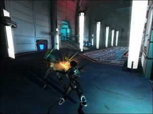 Den Höhepunkt bilden ganz klar die tollen Finisher. BloodRayne lässt grüßen: Sobald ihr die Energie eures Gegenübers in den roten Bereich gekämpft habt, könnt ihr ihm mit einem mächtigen Manöver den Rest geben. Da das unterkühlte SciFi-Szenario nicht dem brutalen Blutrausch huldigt, stört es diesmal auch nicht, dass kein Blut fließt. Schade nur, dass Terminal Reality einmal mehr Bösewichter mit dem IQ einer saarländischen Waldameise erschaffen hat. Anders als im zweiten Vampir-Abenteuer hetzen euch die Entwickler aber nicht Dutzende der gleichen Feinde auf den Hals, so dass die Prügelszenen etwas glaubwürdiger wirken. Fordernd sind die Auseinandersetzungen trotzdem, denn Aeon hält nur wenigen Treffern stand, bevor sie zu Boden geht.
